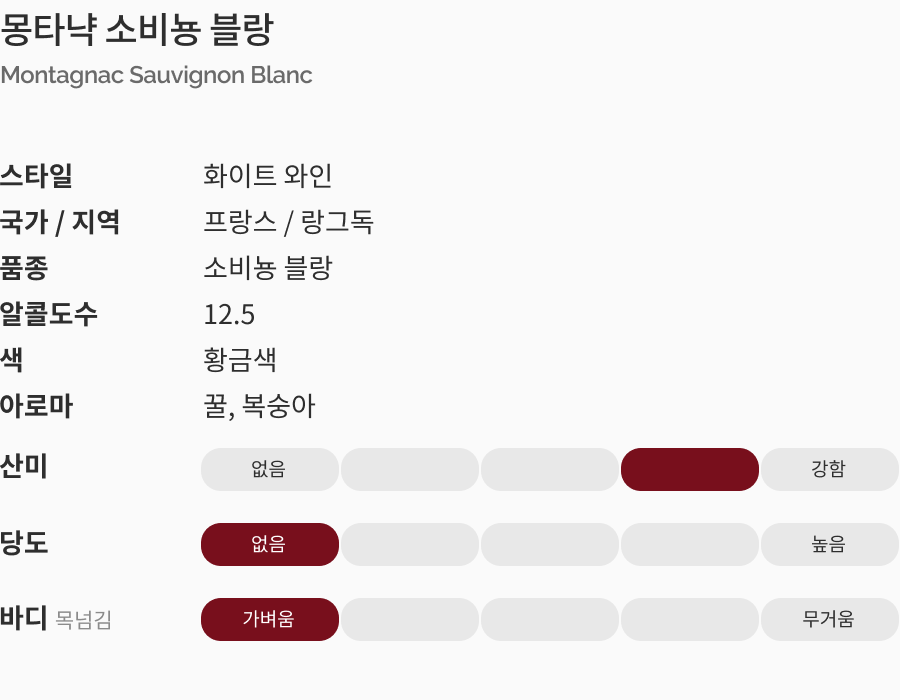 스테인리스 스틸 탱크에서 숙성하여 특유 산미가 인상적이다.