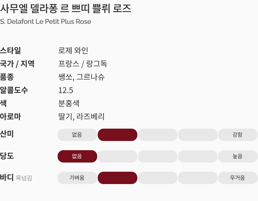 Nose : 라즈베리, 딸기의 향긋한 아로마